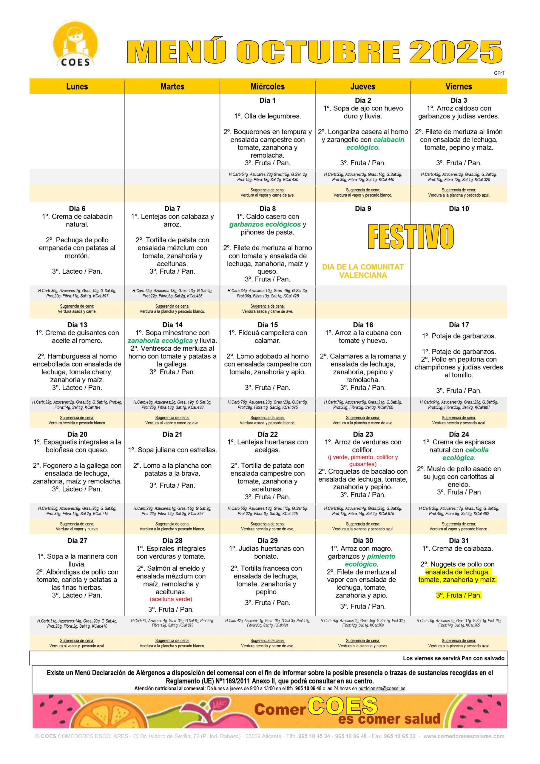 Un equipo de nutricionistas especializados en alimentacion infantil de la empresa COES elabora y planifica cuidadosamente los menús mensuales para nuestro alumnado, siguiendo las normativas vigentes sobre la alimentación infantil. De esta manera consiguen elaborar menús inspirados en una dieta mediterránea equilibrada y rica en hidratos de carbono, verduras, hortalizas y proteínas para cada uno de los comensales.